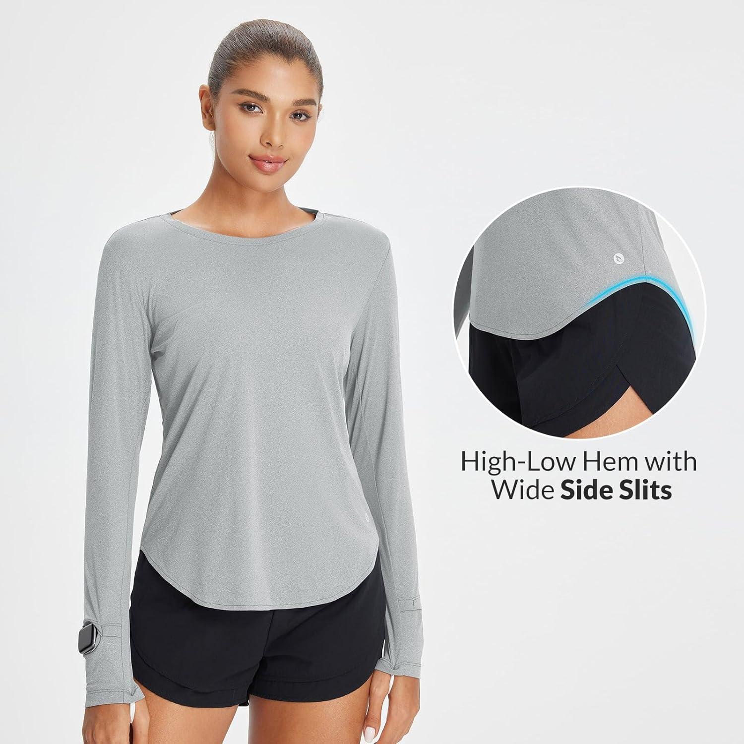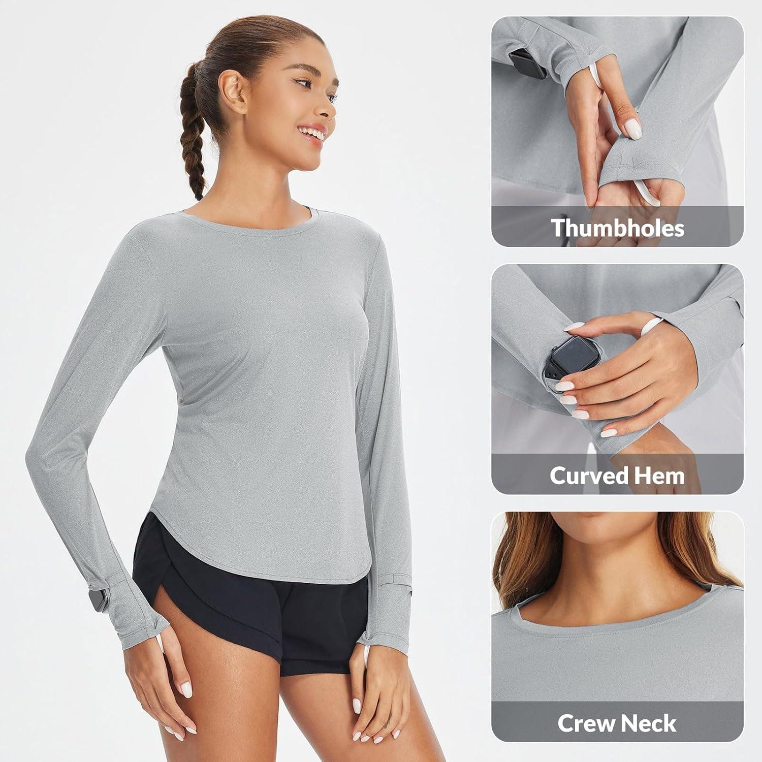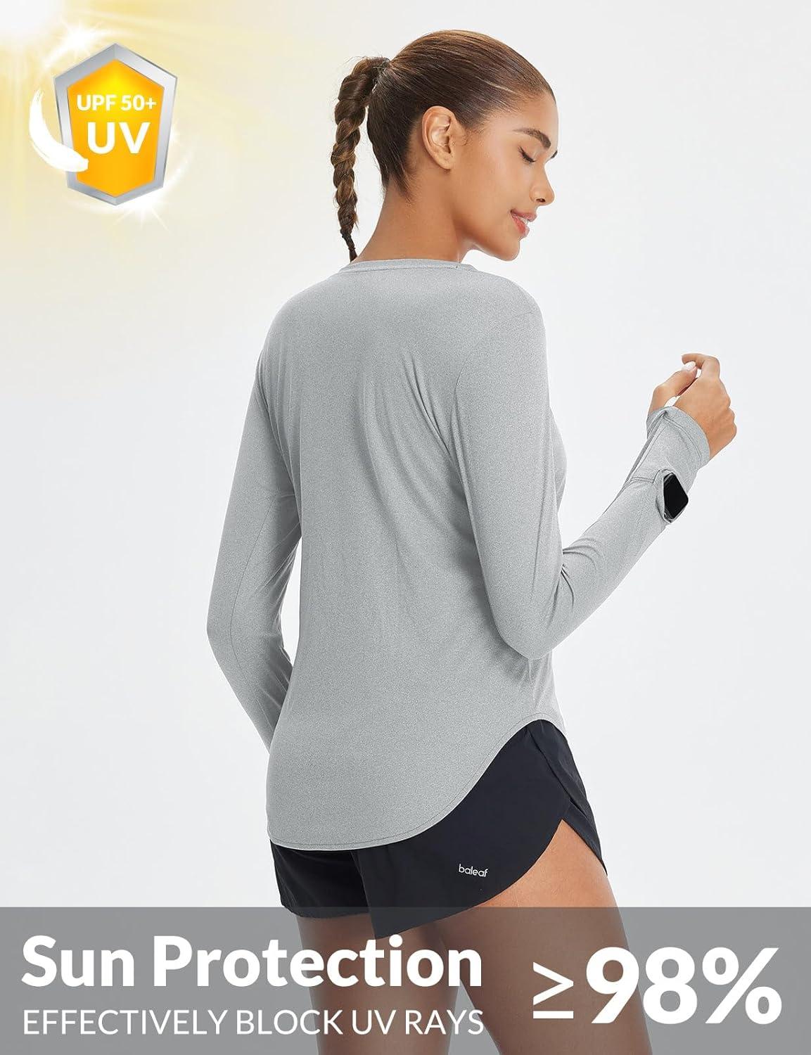 BALEAF Women’s Sun Shirts UPF 50+ Long Sleeve Hiking Tops Lightweight Quick Dry UV Protection Outdoor Clothing(Heather Light Gray)