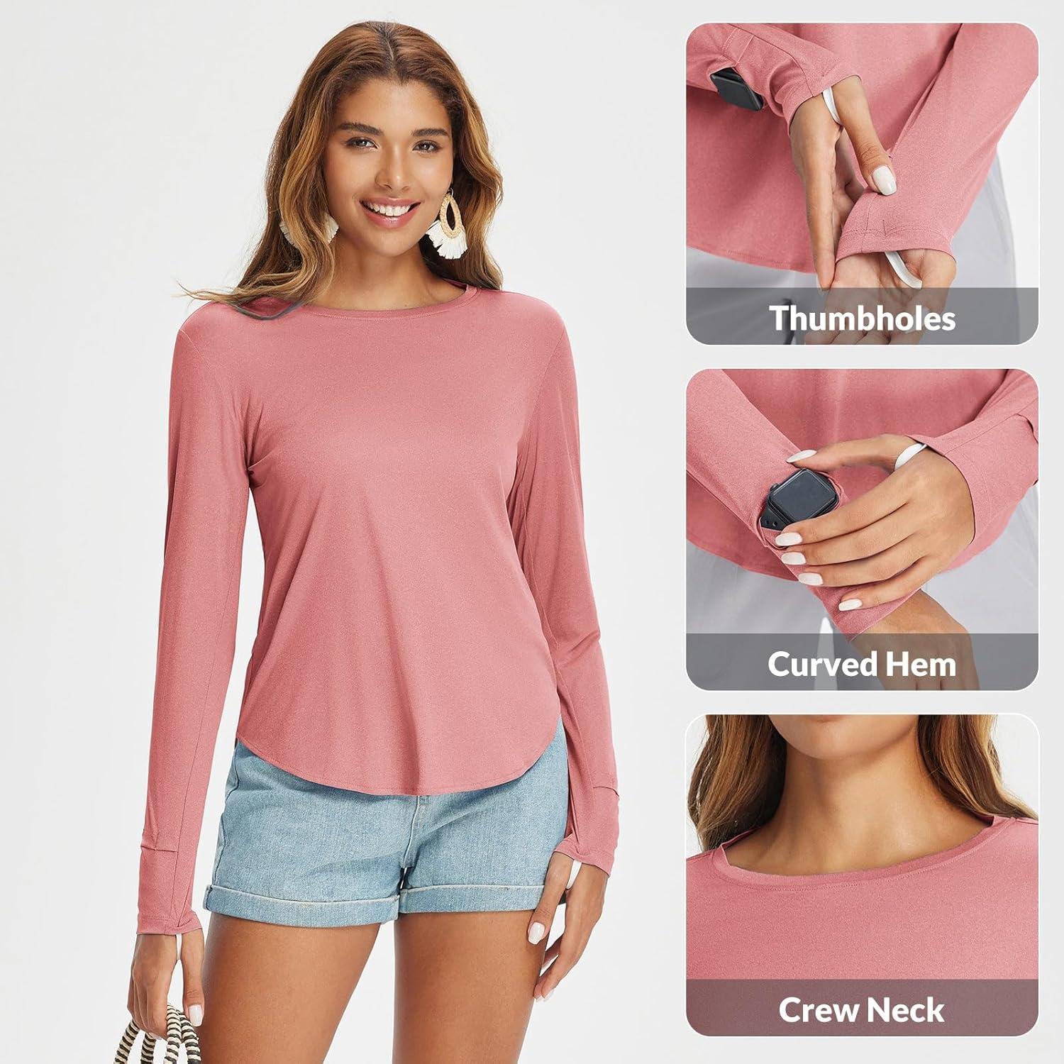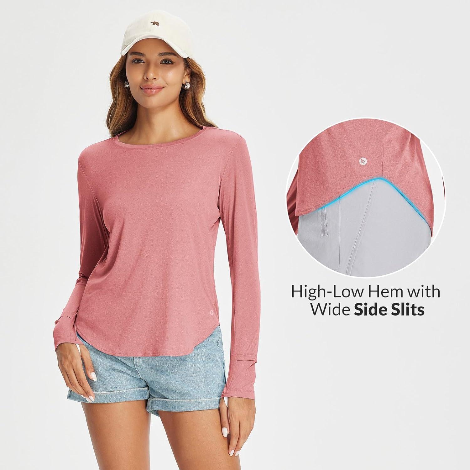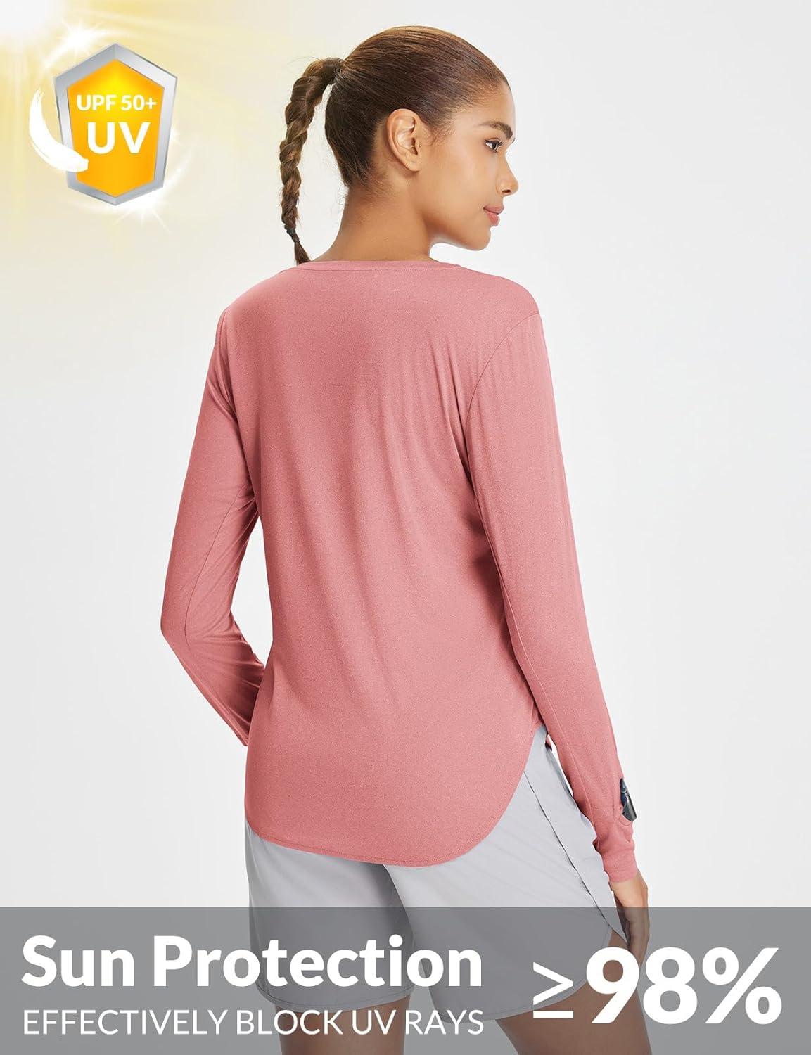 BALEAF Women’s Sun Shirts UPF 50+ Long Sleeve Hiking Tops Lightweight Quick Dry UV Protection Outdoor Clothing(Heather Orange)