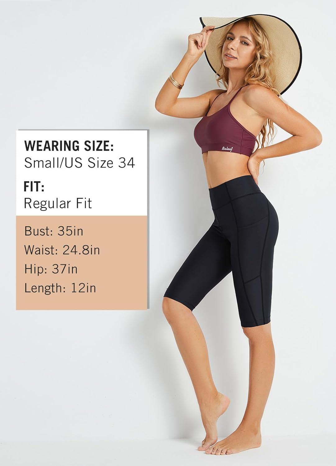 baleaf Women’s Swimming Shorts Long Leggings SPF UV UPF50+ High Waist Swimsuit with Pockets for Swimming Surf Beach(Black)
