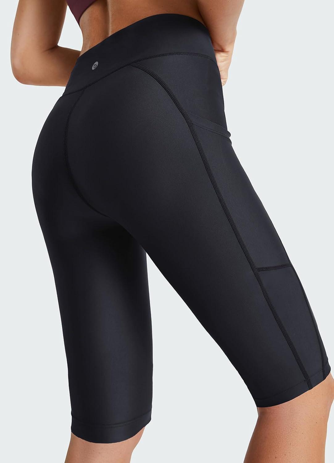 imagebaleaf Womens Swimming Shorts Long Leggings SPF UV UPF50 High Waist Swimsuit with Pockets for Swimming Surf BeachBlack