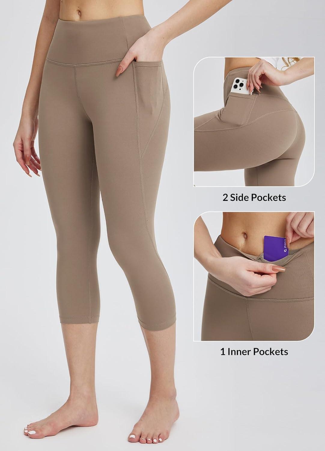 baleaf Women’s Swimming Shorts Long Leggings SPF UV UPF50+ High Waist Swimsuit with Pockets for Swimming Surf Beach(Cocoa Crème-lycra)