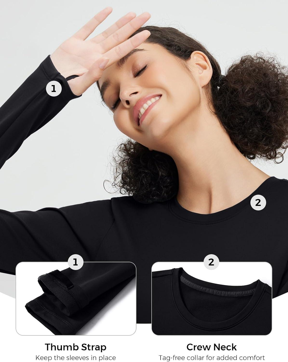 imagebaleaf Womens Thermal Tops Long Sleeve Fleece Running Shirts Thumbhole Cold Weather Winter Gear Workout Base LayerBlack