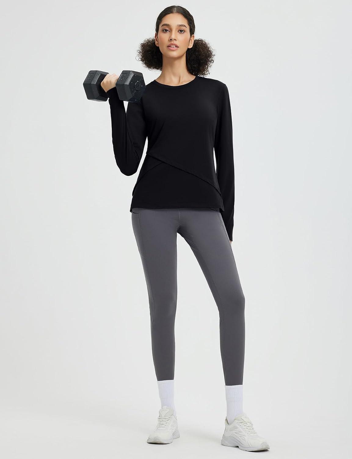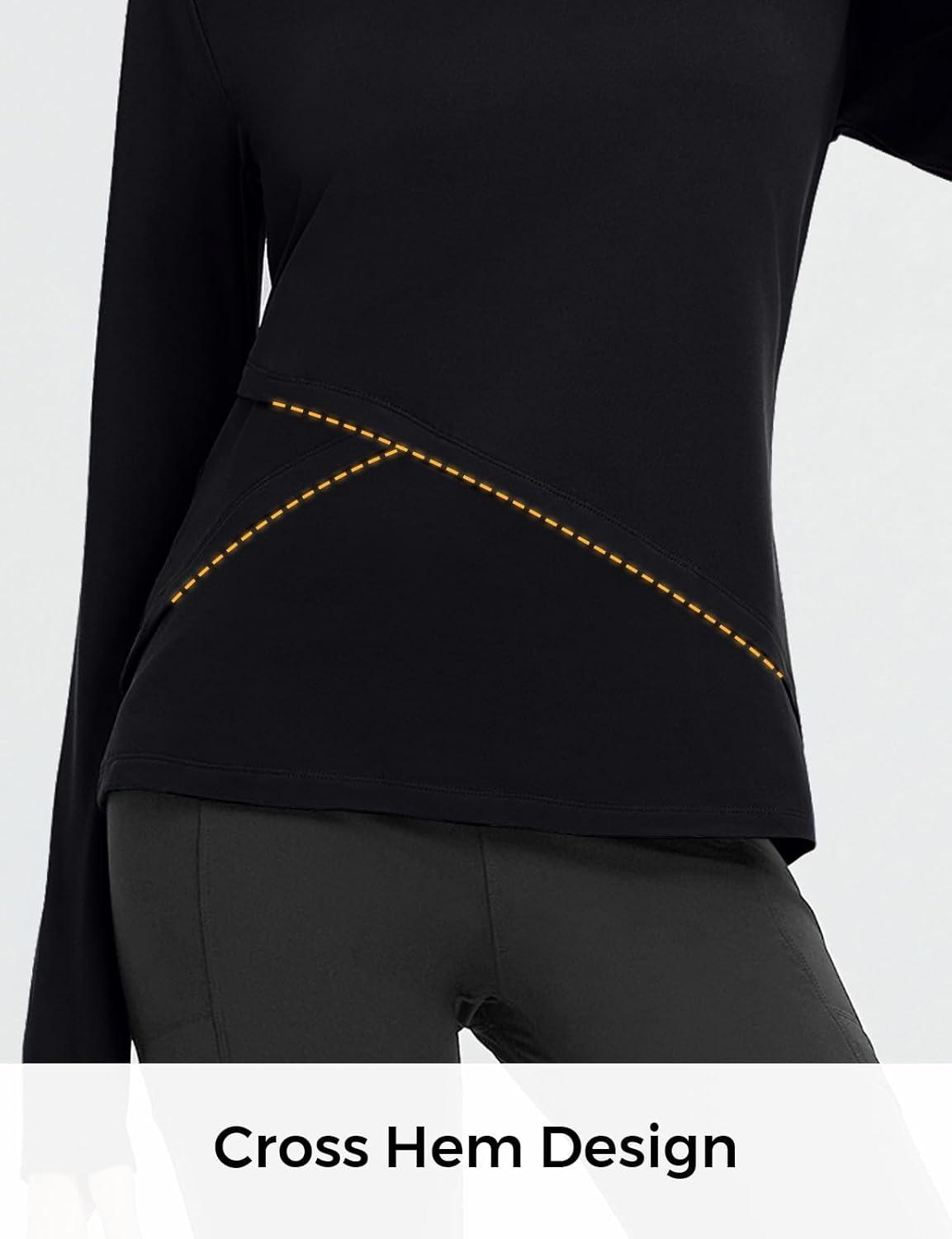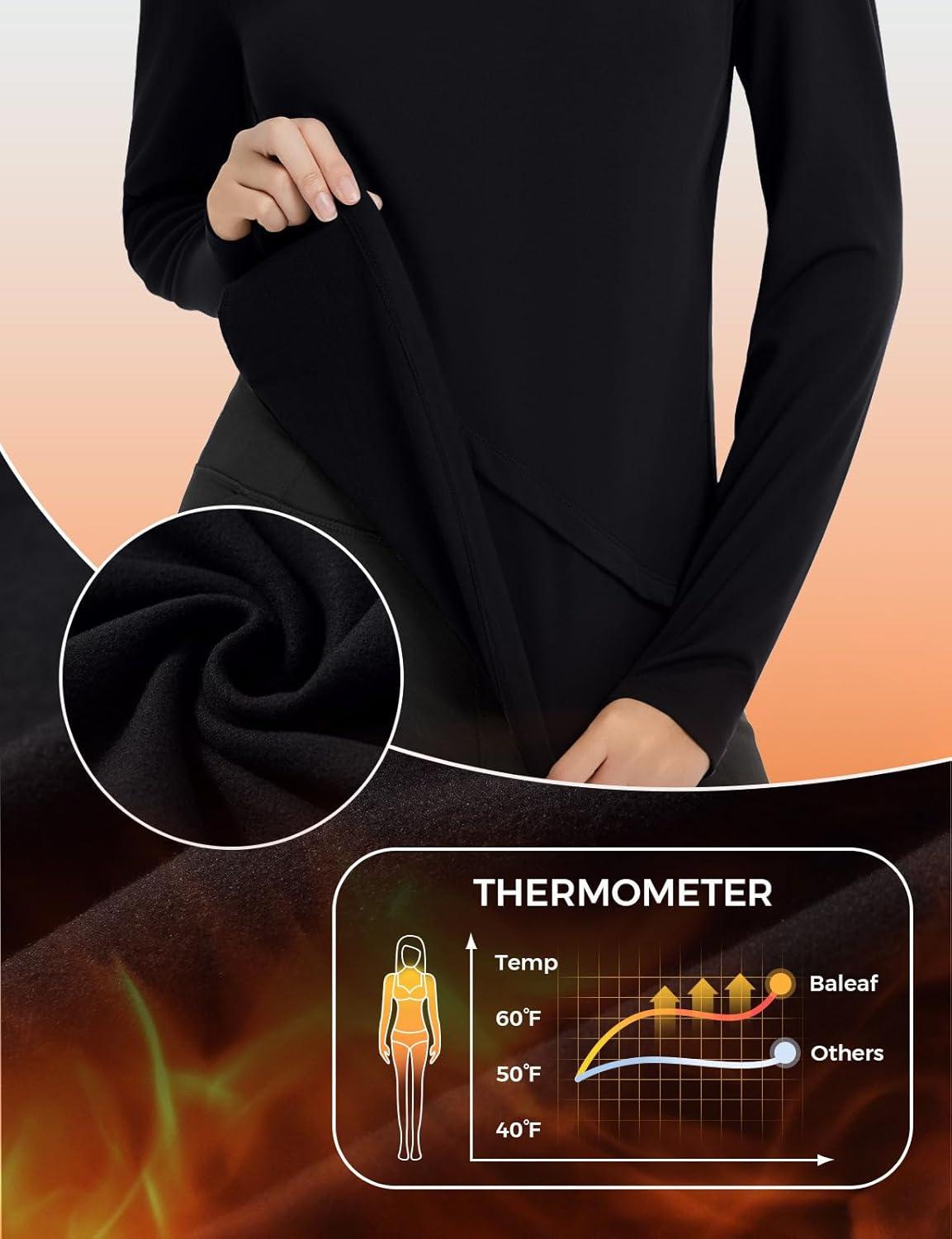 baleaf Women's Thermal Tops Long Sleeve Fleece Running Shirts Thumbhole Cold Weather Winter Gear Workout Base Layer(Black)