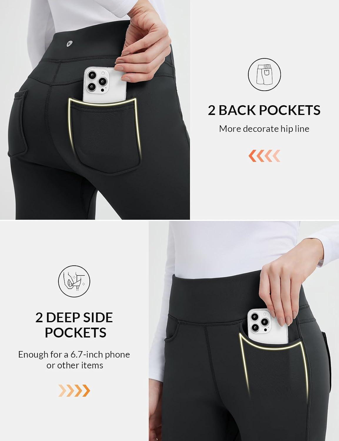 imagebaleaf Womens Thick Fleece Lined Leggings Winter Warm Jeggings Water Resistant High Waisted Tights Snow Pants 4 PocketsBlack