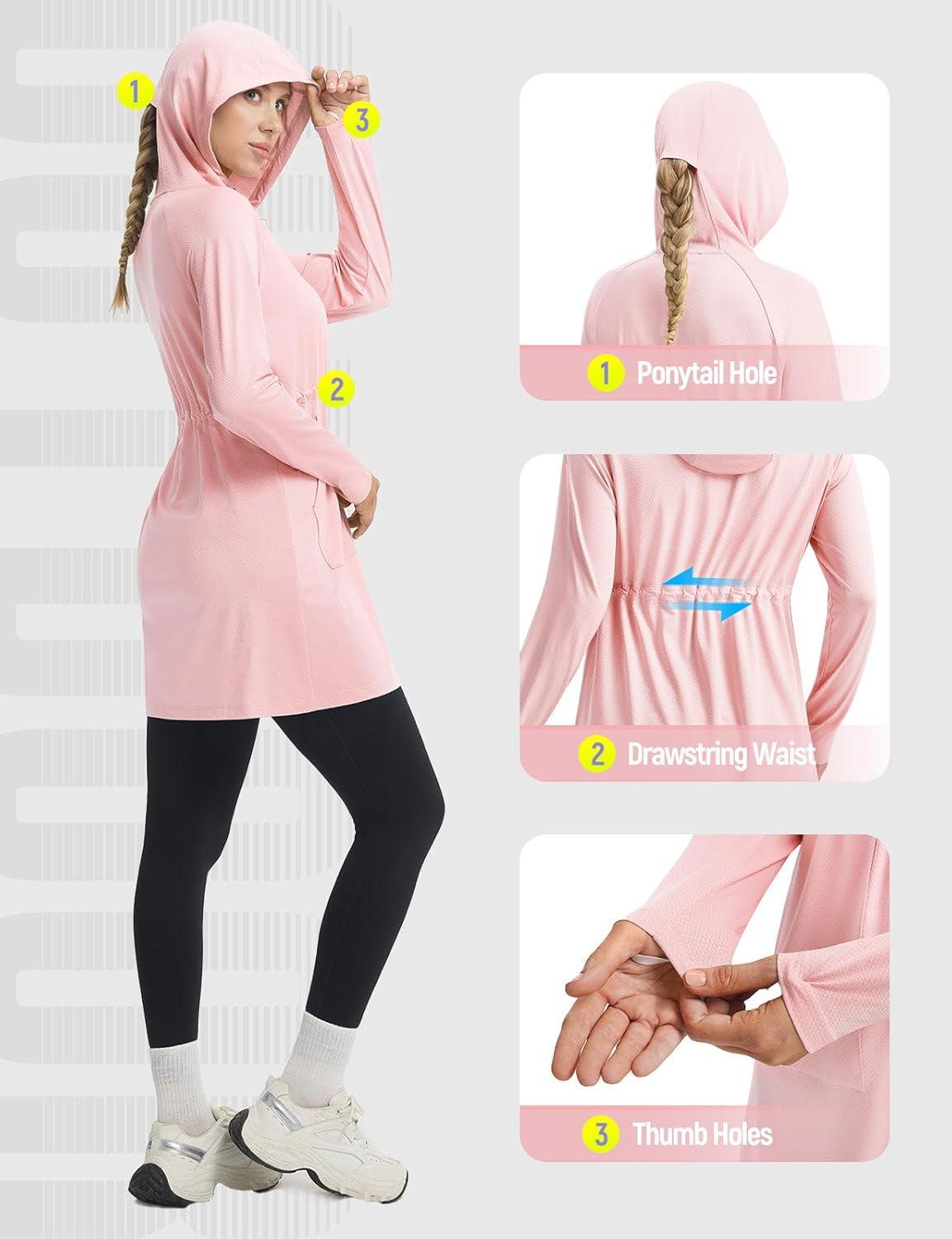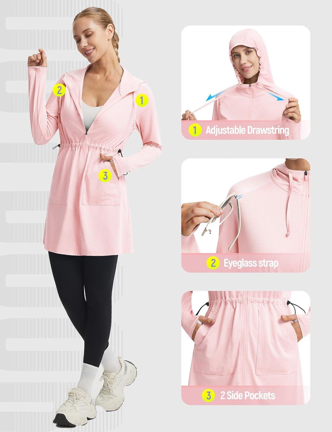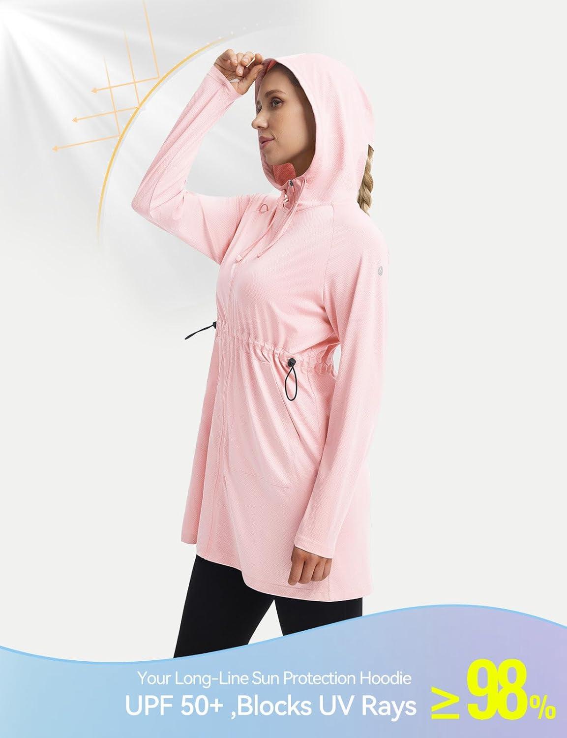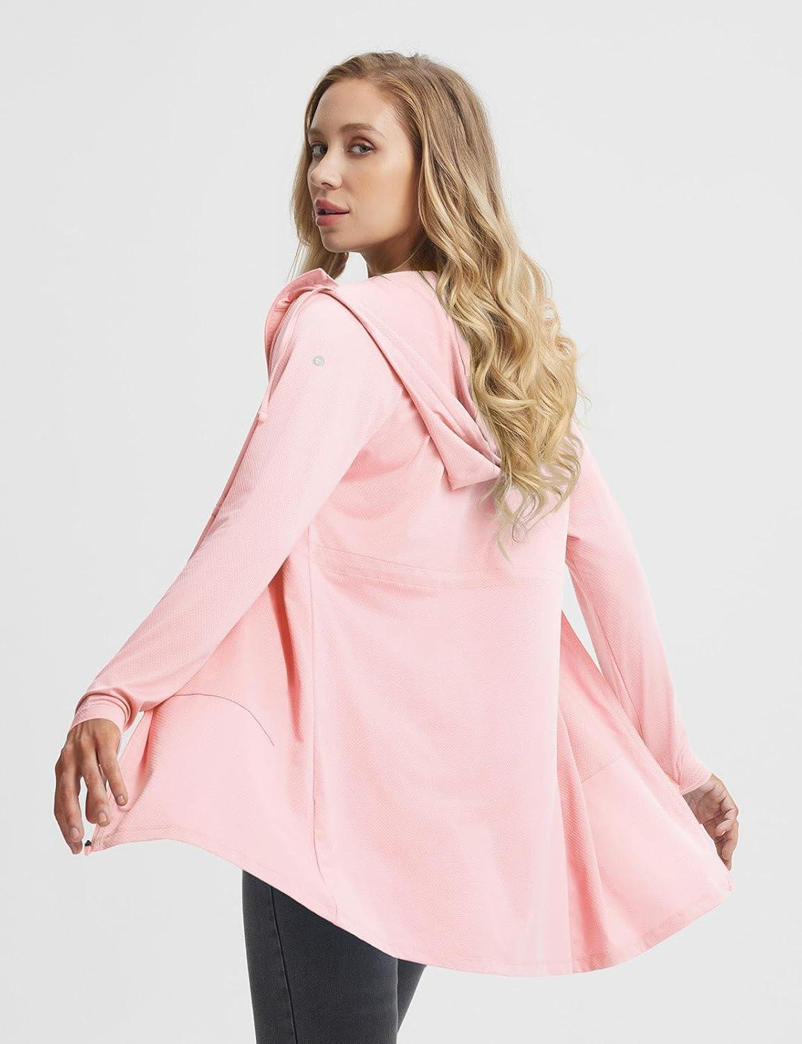baleaf Women's UPF 50+ Long Jacket UV Sun Protection Hoodie Rash Guard Cooling Lightweight Cover Up SPF Swim Beach Athletic(Light Pink)