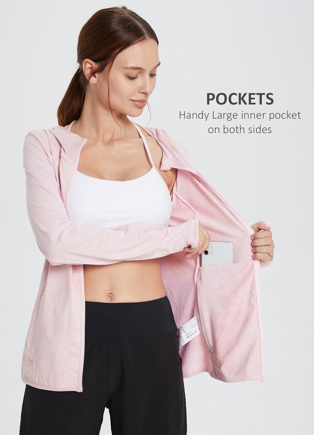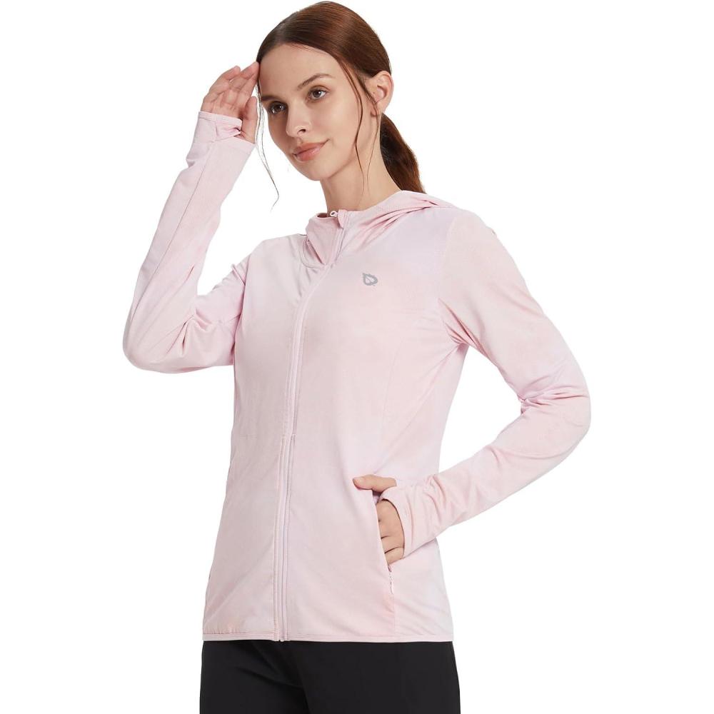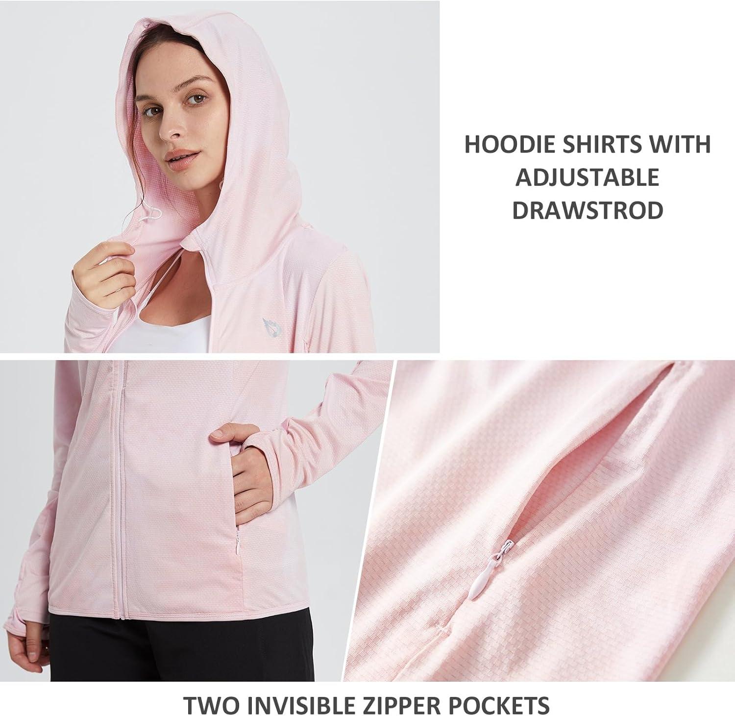 baleaf Women’s UPF 50+ Sun Protection Jacket Hooded Cooling Shirt with Pockets Hiking Outdoor Performance(Dye Pink)