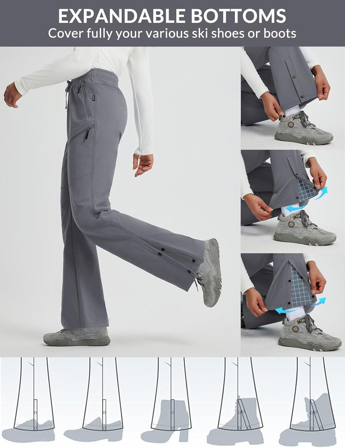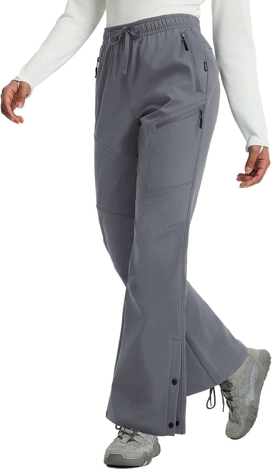 imagebaleaf Womens Waterproof Pants Hiking Snow Fleece Lined Pockets Thermal Warm Insulated Softshell SkiDark Gray