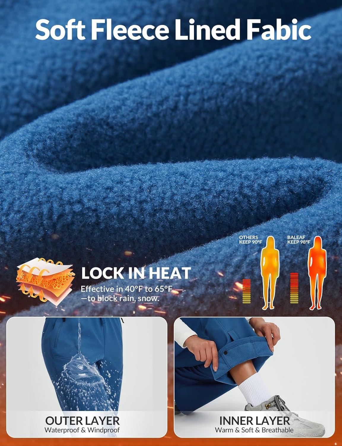 baleaf Women’s Waterproof Pants Hiking Snow Fleece Lined Pockets Thermal Warm Insulated Softshell Ski(Navy Blue)