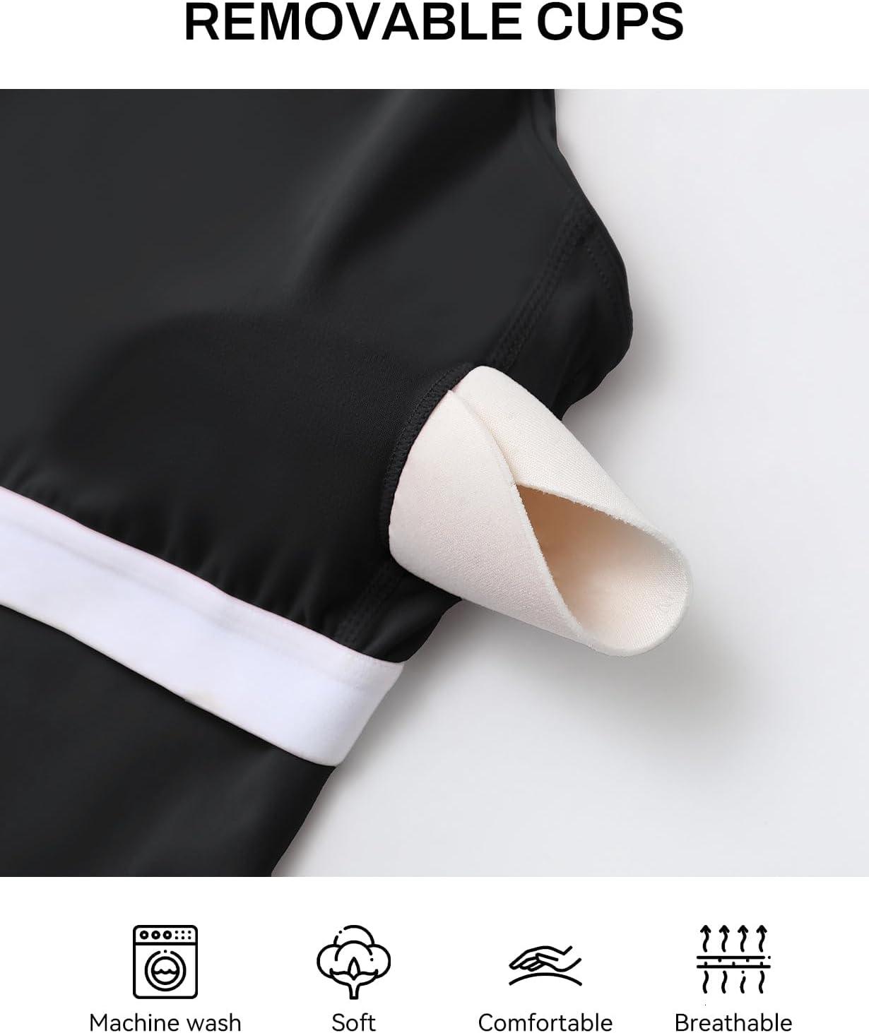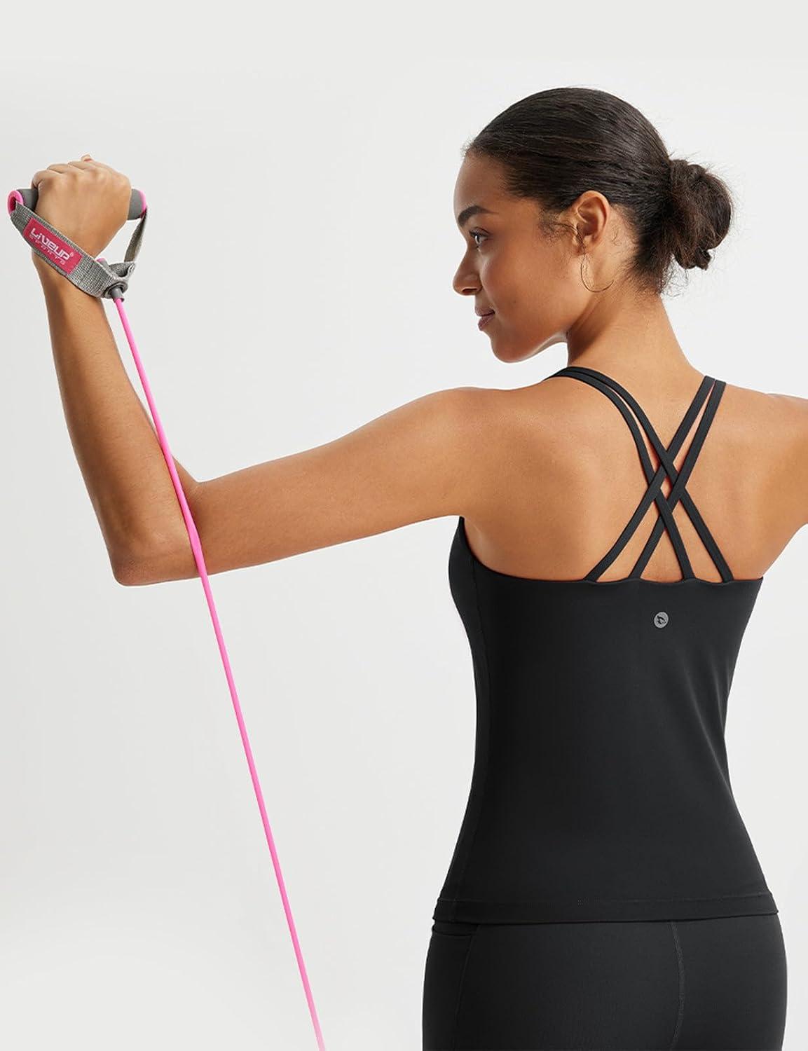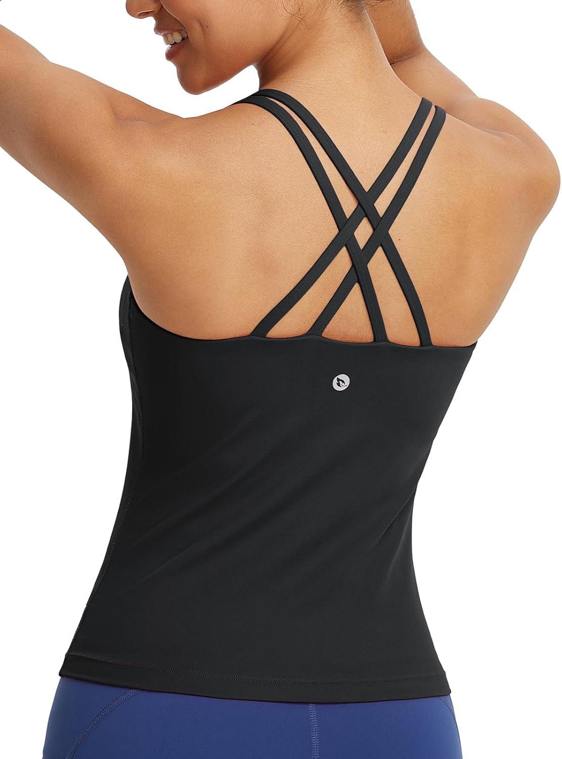 imagebaleaf Womens Workout Tank Tops with Wireless Padded Yoga Crop Longline Sports Bras Double Spaghetti StrapBlack