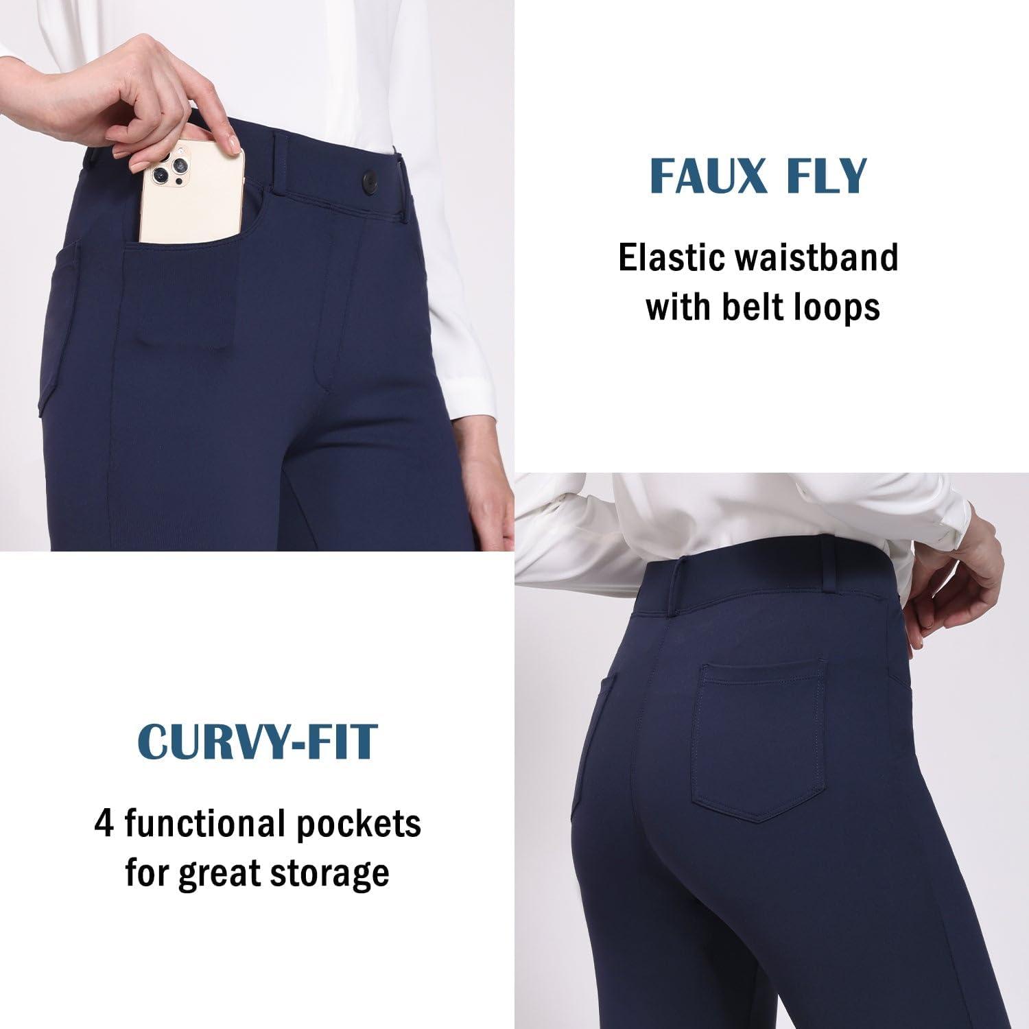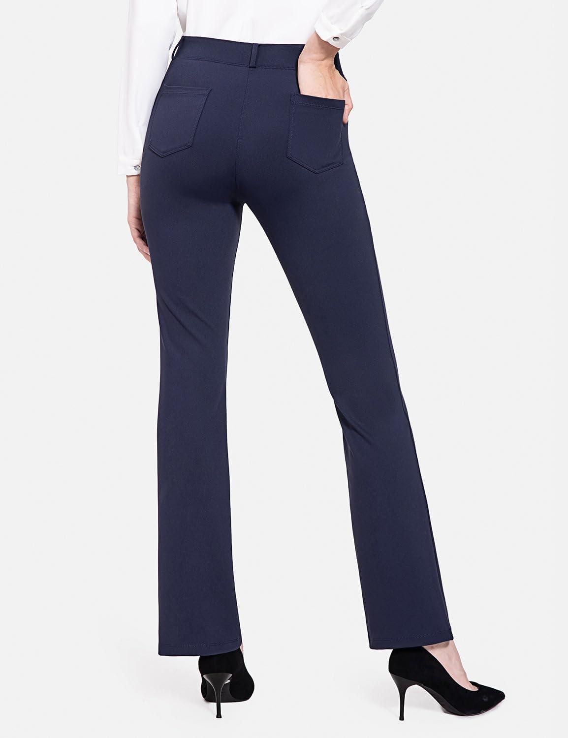 imagebaleaf Womens Yoga Dress Pants Stretchy Work Slacks Business Casual Straight LegBootcut Pull on Trousers w 4 PocketsNavy Blue