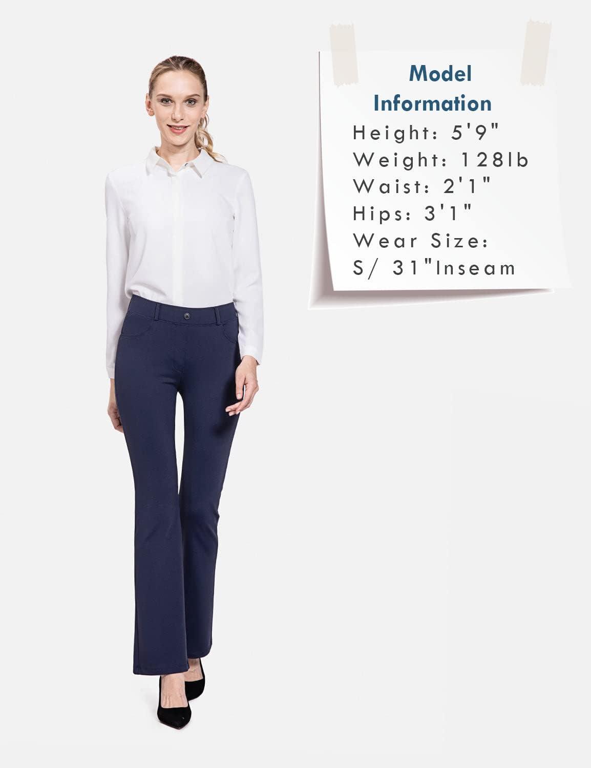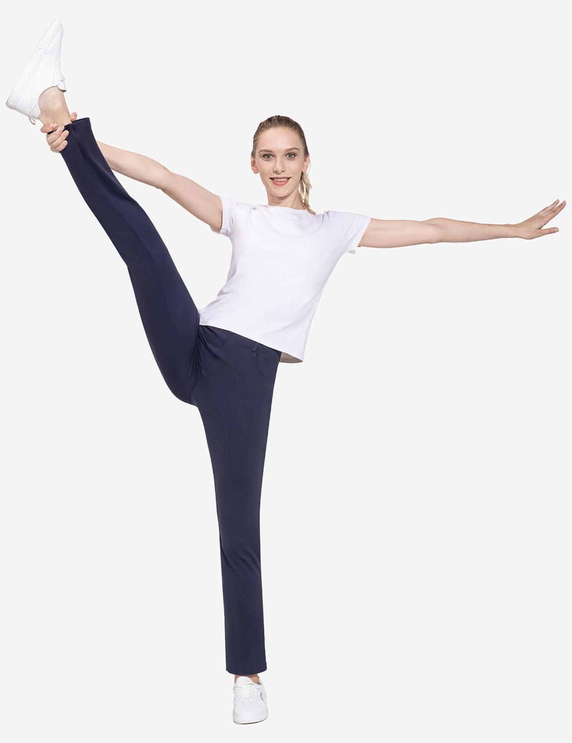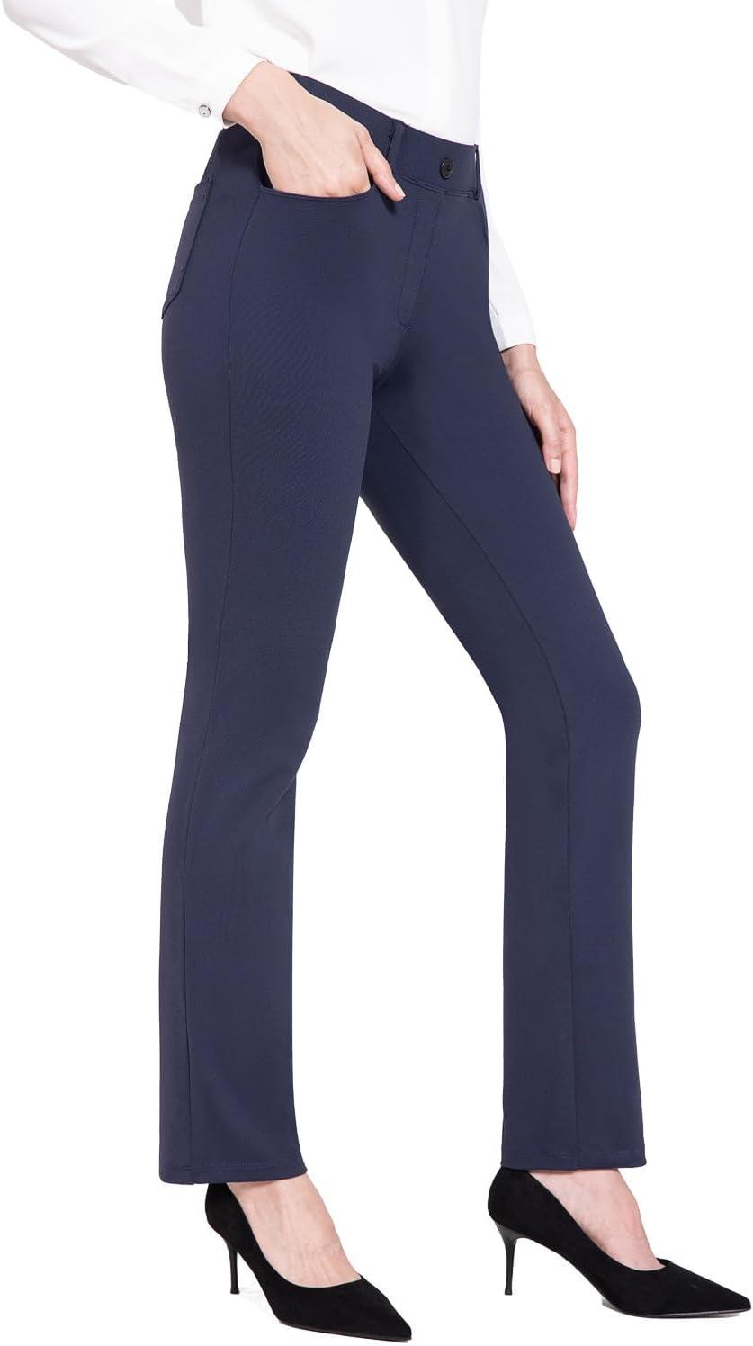 baleaf Women's Yoga Dress Pants Stretchy Work Slacks Business Casual Straight Leg/Bootcut Pull on Trousers w 4 Pockets(Navy Blue)