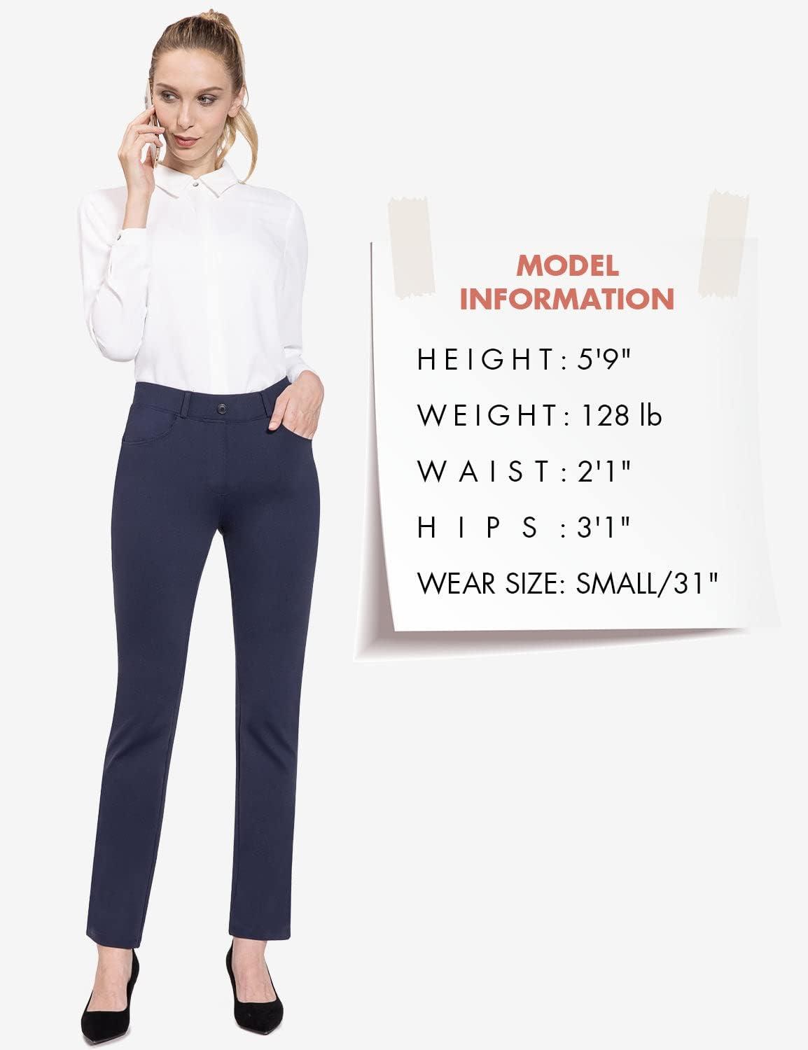 baleaf Women’s Yoga Dress Pants Stretchy Work Slacks Business Casual Straight Leg/Bootcut Pull on Trousers w 4 Pockets(Navy Blue)