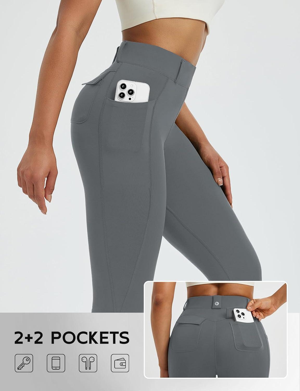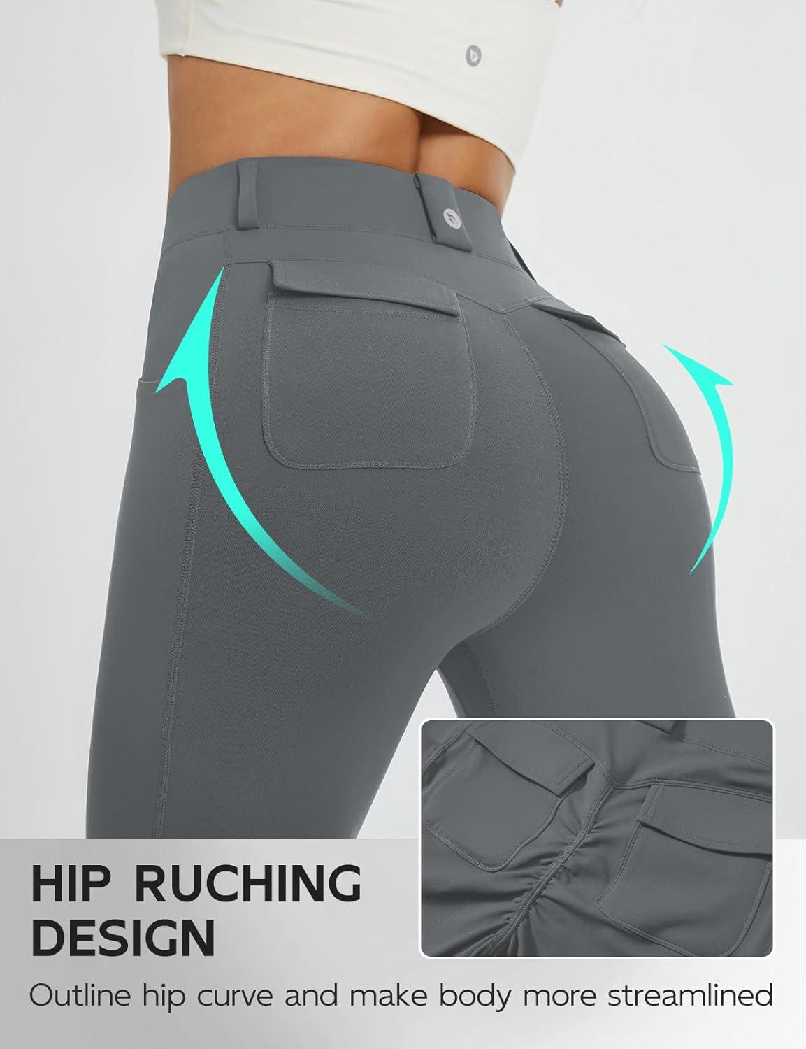 baleaf Women’s Yoga Pants with 4 Cargo Pockets Scrunch Workout Flare Leggings High Waist Casual Gym Bell Bottom(Dark Gray)