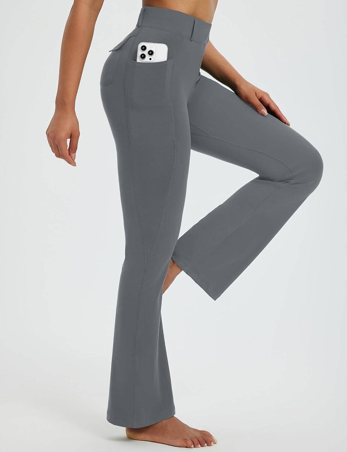 Don’t wait, get up to 50% off on baleaf Women’s Yoga Pants with 4 Cargo Pockets Scrunch Workout Flare Leggings High Waist Casual Gym Bell Bottom(Dark Gray) during our end-of-season sale event.