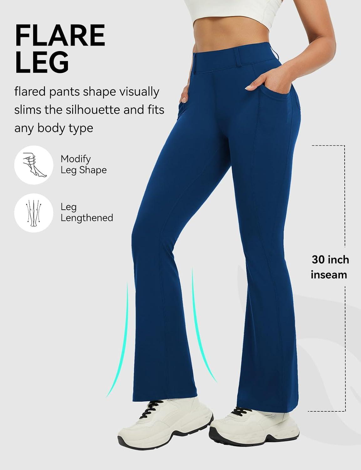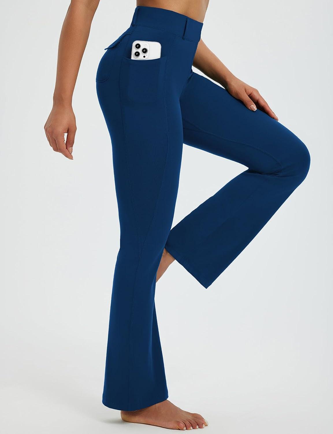 imagebaleaf Womens Yoga Pants with 4 Cargo Pockets Scrunch Workout Flare Leggings High Waist Casual Gym Bell BottomNavy Blue