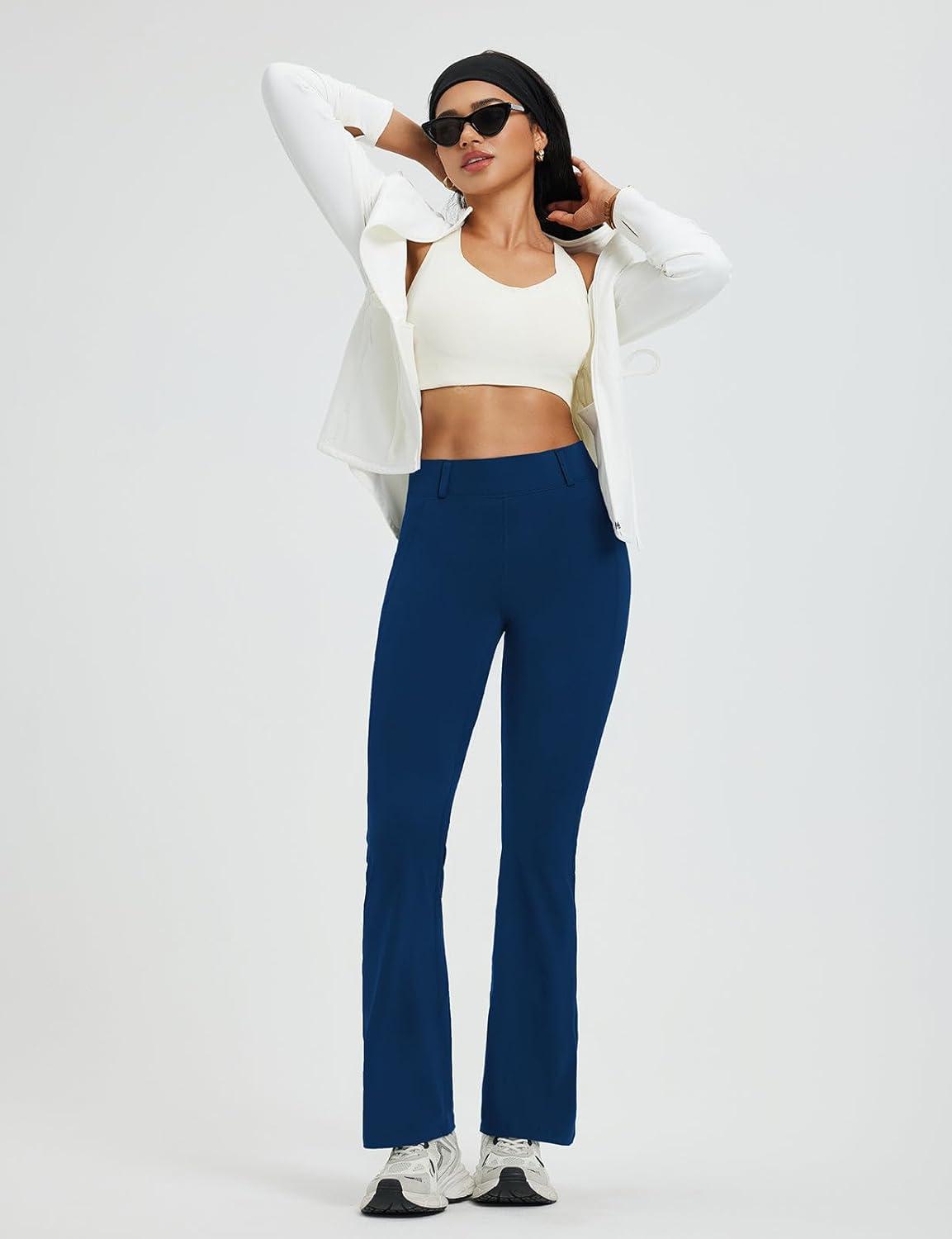 baleaf Womens Yoga Dress Pants Work with 4 Pockets Bootcut Business Leggings Stretch High Waisted Slacks Casual 30″(Khaki)